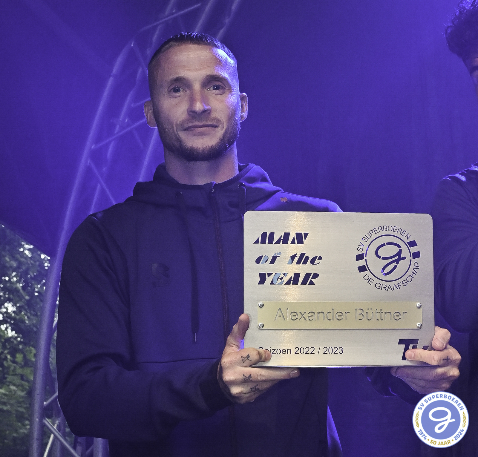 De laatste wedstrijd kwam de complete selectie op het podium in de Kantine. Ondanks het mindere seizoen zijn onze supporters altijd enthousiast en werd het een mooi feest in de Kantine. Alexander werd uitgeroepen als Man of the Year, maar we hadden de goede trofee nog niet. We hebben toen met Alexander afgesproken dat hij de trofee op een ander moment krijgt. Dat moment is op de Open Dag zaterdag 5 augustus.