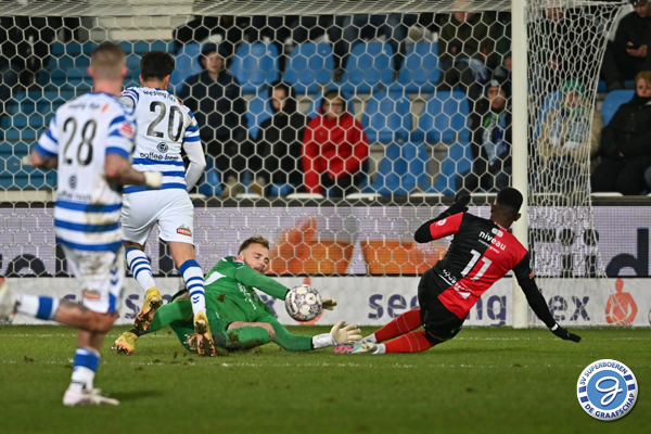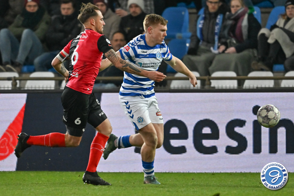 De wedstrijd begon met het houden van een minuut stilte voor de slachtoffers van de aardbeving in Turkije en Syrië. De Roodzwarten maakten het de Superboeren de eerste helft niet gemakkelijk. Het kreeg kansen via Vlijter die gestuit werd door Hidde Jurjus. Uit de daaropvolgende hoekschop was Vlijter op nieuw gevaarlijk. Zijn schot werd van de lijn gehaald.