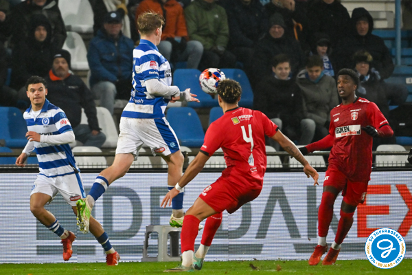 FC Dordrecht was dicht bij een nieuwe voorsprong. Eerst stuitte Mathis Suray op doelman Mees Bakker, niet veel later kwam hij nog een keer in kansrijke positie na geklungel van Jan Lammers.