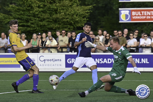 Na 13 minuten dan eindelijk de eerste treffer van de avond. Uit een mooie aanval via Levi Schoppema en Blnd Hassan is het Ezra van der Heiden die in de rebound de 0-1 laat aantekenen.