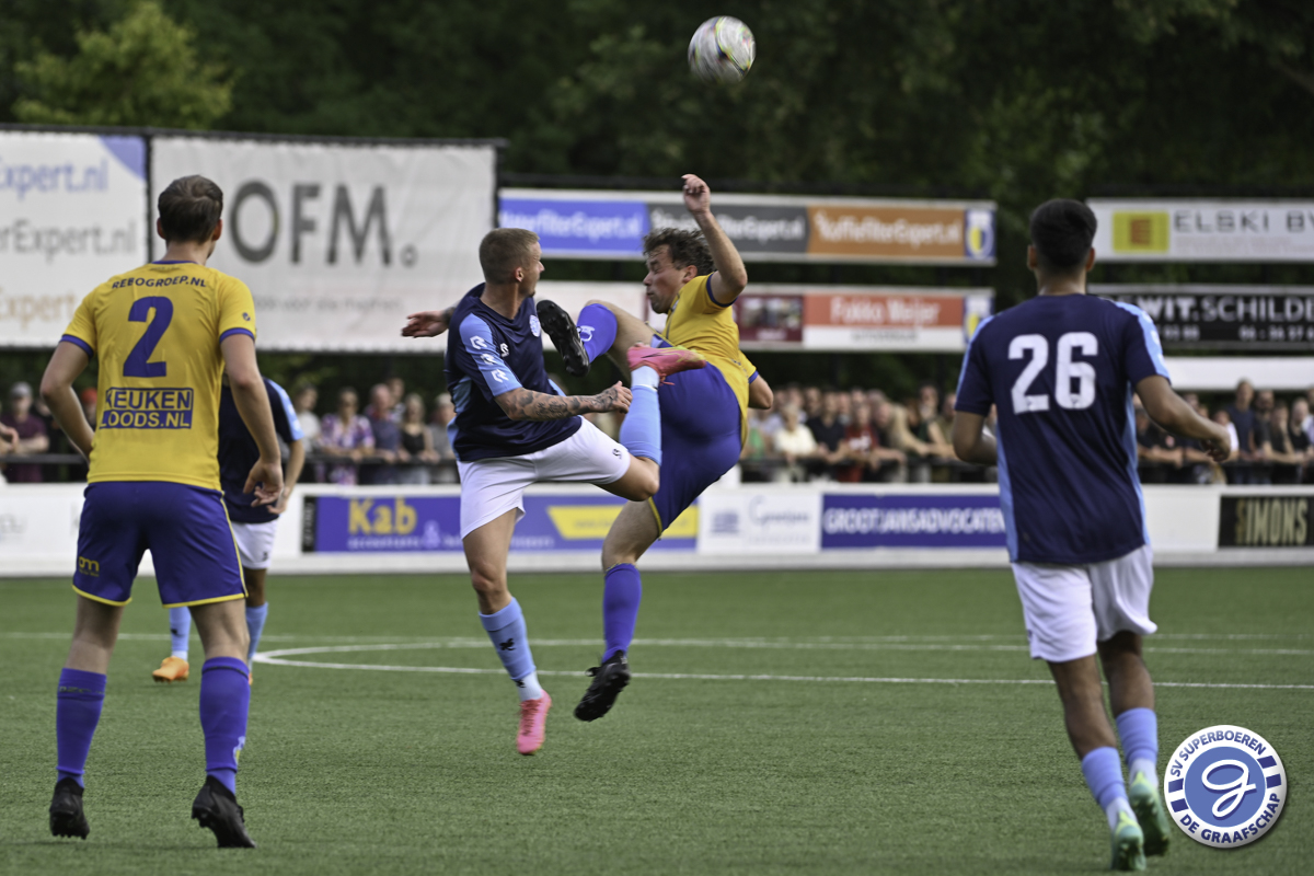Na de openingstreffer zetten de Superboeren meer druk. Het duurde dan ook niet lang voordat de 2e van de avond viel. Uit een prachtig aangesneden hoekschop van Alexander Büttner is het Jan Lammers die het leder tegen de touwen kopte. 0-2.