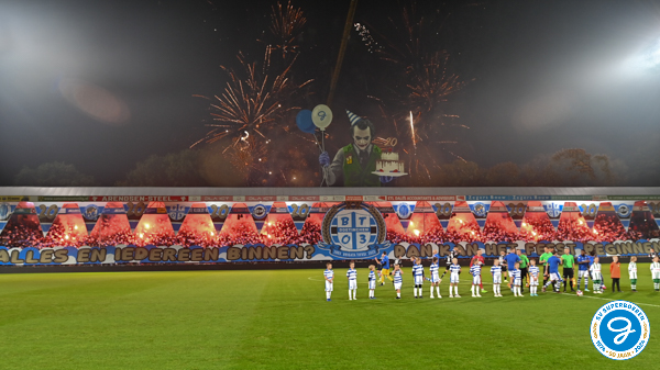 Het was gisterenavond een feestelijke avond op de Vijverberg. Niet alleen wonnen de Superboeren de Blauwwitte clash van FC Eindhoven, maar boven al vierde de Brigata Tifosi, de fanatieke supportersgroep, met een aantal ongekende sfeeracties, haar 20e-jarige verjaardag.