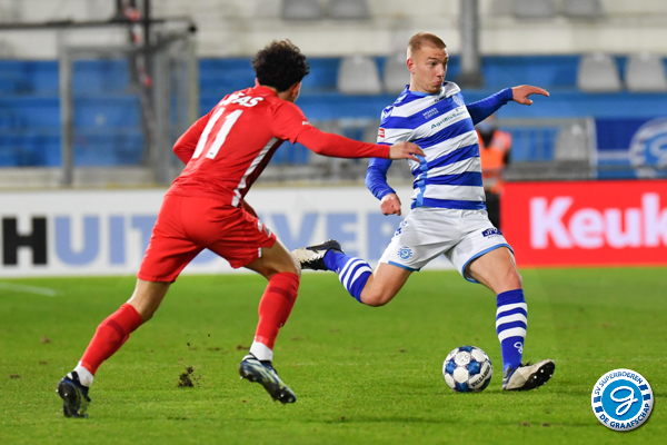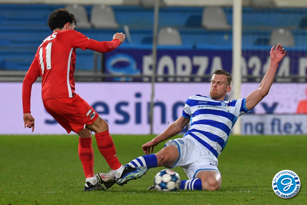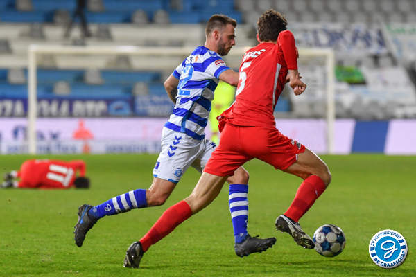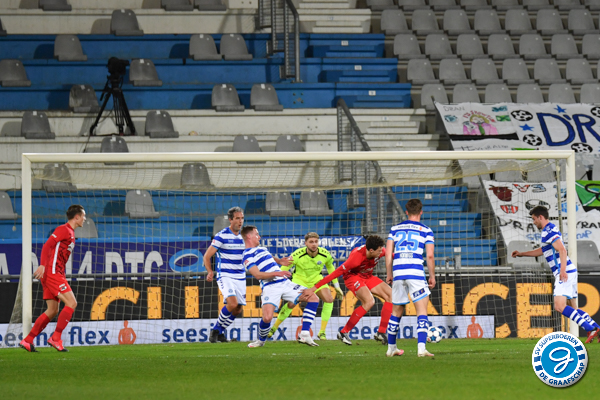 Toch was het De Graafschap dat aan de leiding kwam. Via Jasper van Heertum en Joey Konings komt de bal bij Daryl van Mieghem.