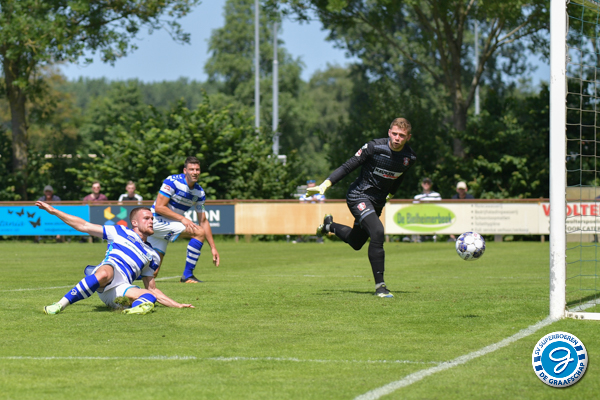 In de 35e minuut mogen de blauw-witten opnieuw een strafschop nemen. Noah Lewis haalt binnen de 16 meter Julian Lelieveld onderuit. Opnieuw is het Joey Konings die het klusje klaart vanaf 11 meter. Ditmaal schiet hij de bal in de rechterhoek buiten bereik van doelman Bossin.