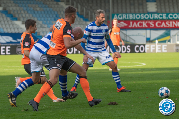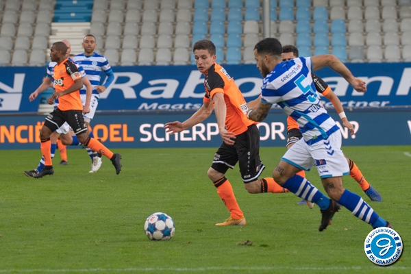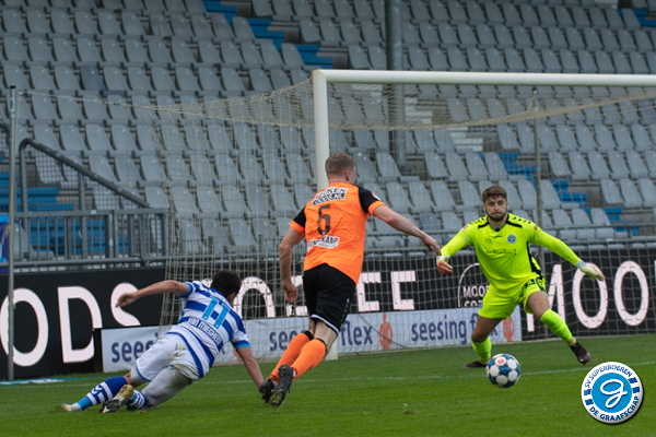 Met nog 10 minuten tot aan de rust zien we een tweetal kansen voor De Graafschap. Mohamed Hamdaoui ziet zijn beide inzetten. Een vrije trap en een uithaal, niet tot doelpunt worden omgezet.