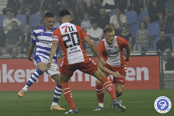 In de beginfase zien we aan beide kanten wat kansen om de score te openen. Zo kopte Simon Colyn al vroeg in de wedstrijd over na een voorzet van Basar Önal. De eerste echt grote kans was voor de bezoekers. Het is doelman Mees Bakker die in een op een situatie uitstekend redding brengt op een inzet van Desley Ubbink. Even later ontsnapt De Graafschap opnieuw, nu is het El Messaoudi die van dichtbij bijna de score opent. Zijn inzet wordt tot corner verwerkt.