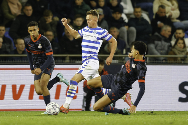 Het eerste kwartier was er een van aftasten van beide ploegen. De eerste kans was in de 13e minuut toen Danzell Gravenberch doelman Schiks probeerde te verrassen met een hakje. Het leverde helaas geen doelpunt op.