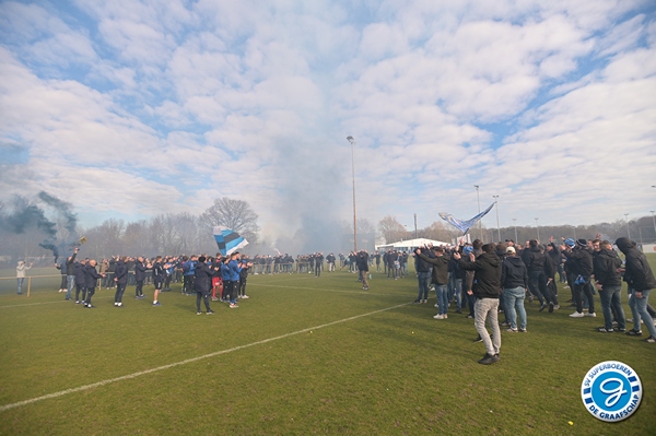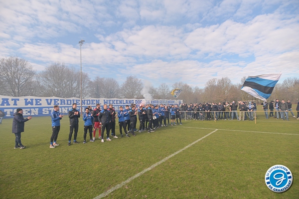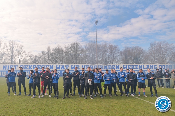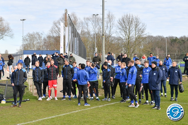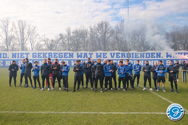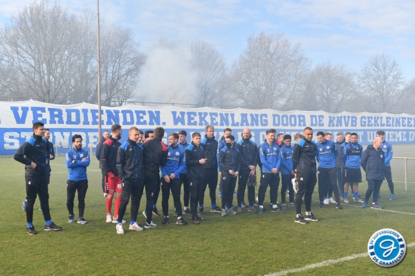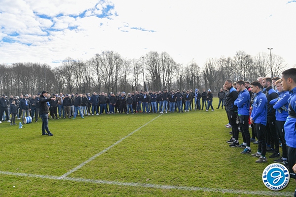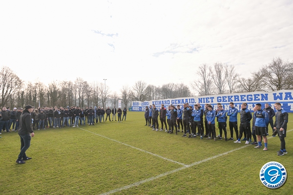 De spelersgroep werd getrakteerd op een motivatiespeech om de laatste 9 finales vol D’ran te gaan voor promotie. Ook waren er mooie woorden van respect voor Ralf Seuntjes omdat hij gewoon was aangesloten voor de sfeeractie na de spandoeken van vorige week waarbij Seuntjens door de BT werd gesommeerd te vertrekken.