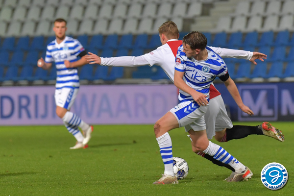 In de 23e minuut komen de blauw witten op achterstand. Met een diepe bal weet Fitz Jim Ünüvar alleen voor Hidde Jurjus te zetten. De linksbuiten bleef rustig, controleerde het speeltuig even en schoot vervolgens de openingstreffer op het scorebord. Even later kreeg de ploeg van John Heitinga de ideale kans op de 0-2, maar De Waal schoot van dichtbij eerst tegen de keeper op, waarna Regeer hoog over schoot.
