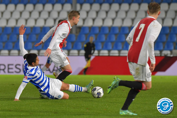In de slotfase sloeg Jong Ajax keihard toe. Uit een splijtende pass van Martha werd Rasmussen gelanceerd die de bal beheerst in het doel schuift. 1-2. Martha maakte er zelf 1-3 van door van rechts naar binnen te komen en hard de verre hoek te treffen: 1-3.