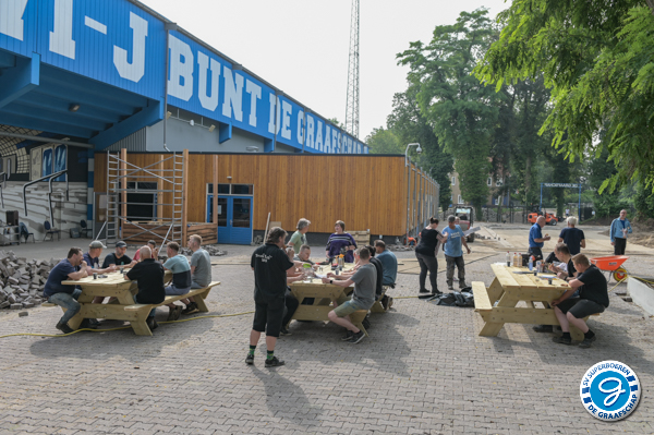 De bouwtekeningen zijn net als voor de kantine, gemaakt door onze eigen bouwkundig tekenaar Arie Wassink. Samen met Pim Steverink hebben Mark Nederlof en Ben Roelofs de begroting sluitend gekregen met de club en sponsors.