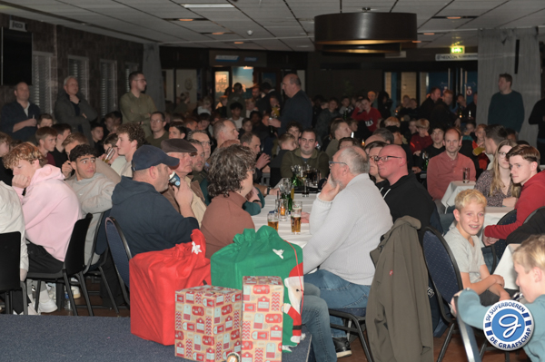 Daarna was het tijd voor het huldigen van alle jubilarissen. Na drie jaar was dit een aanzienlijke lijst van vrijwilligers die de club met al hun inzet al jaren ondersteunt.