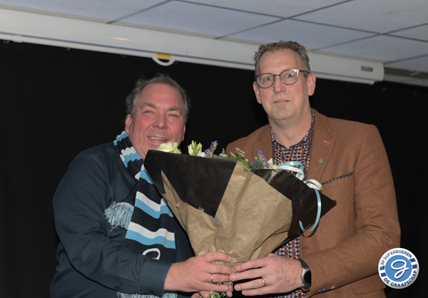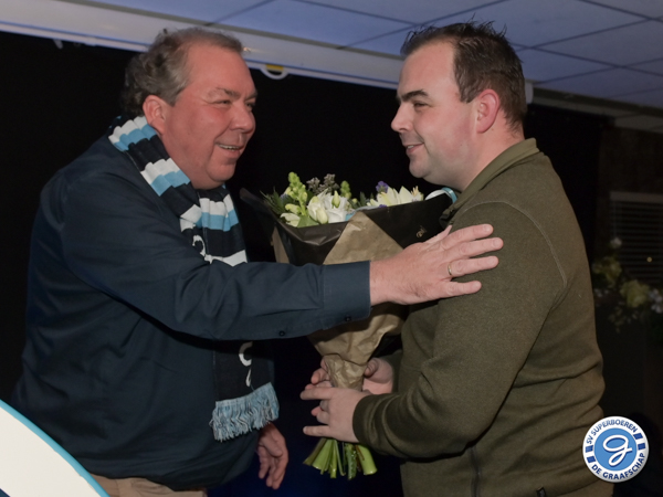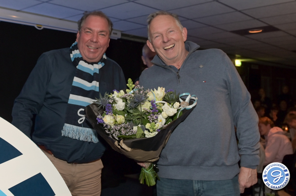 De jubilarissen werden door Hans-Martijn hartelijk bedankt voor hun inzet, en gehuldigd met een speldje en een bos bloemen voor hun diensten de afgelopen jaren.