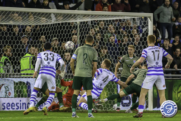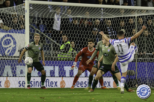 Drie dagen na de overwinning op FC Dordrecht was gisterenavond koploper PEC Zwolle te gast op de Vijverberg. De ploeg van trainer Dick Schreuder speelde een sterke eerste helft waarin ook het enige doelpunt van de avond viel voor de Blauwvingers.
