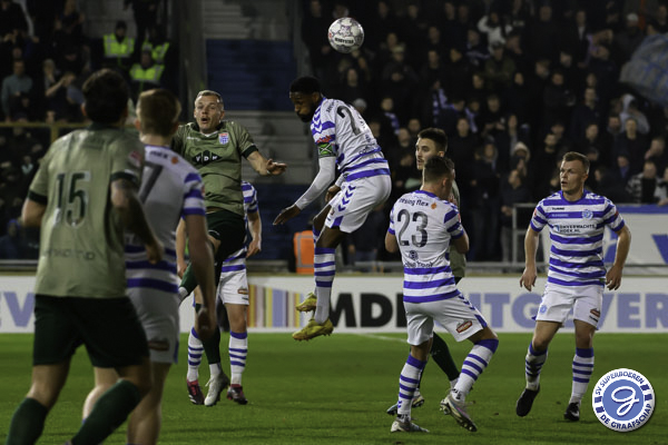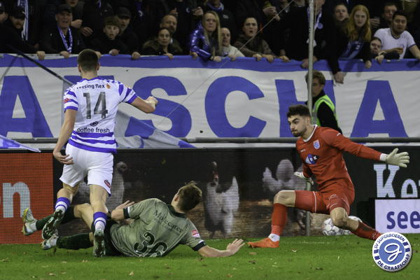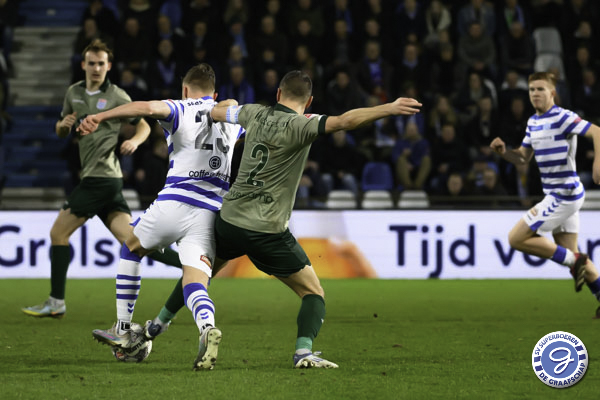 Na de theepauze zien we een wat feller De Graafschap. Binnen 4 minuten is het bijna 1-1. Uit een hoekschop is het Rio Hillen die goed inkopt. Zijn bal wordt echter door Medunjanin van de lijn gehaald. In de daaropvolgende scrimmage belandde de bal van Xandro Schenk op de lat.