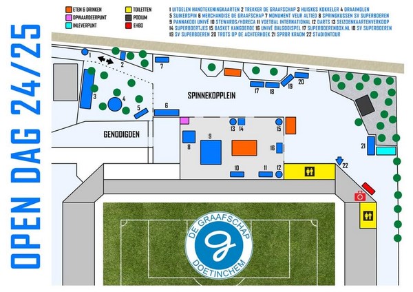 Net zoals de afgelopen 2 edities vindt de Open Dag plaats op het Spinnekopplein en in de supporterskantine.