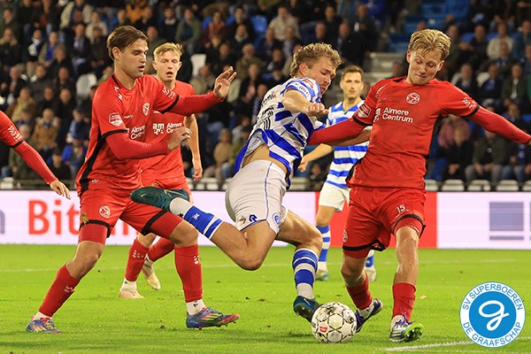 Almere City FC kreeg voor de pauze nog een tweetal grote kansen op de aansluitingstreffer. Maar Burgering, inzet gekeerd door de Graafschap doelman, en Kadille, bal op de kruising, weten het net niet te vinden.