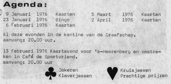 Het waren niet zomaar alleen hand en spandiensten wat de eerste leden van de Supporters Vereniging deden. In het begin van het seizoen regelden ze een tractor met zandstrooier voor de club. Deze werd geschonken tijdens de opening van het Sportcomplex Groot Hagen, waar de amateur- en jeugdafdelingen werden gehuisvest. Er werden verder dans-, bingo- en kaartavonden geregeld, muziekkorpsen voor bij de wedstrijden en lezingen.