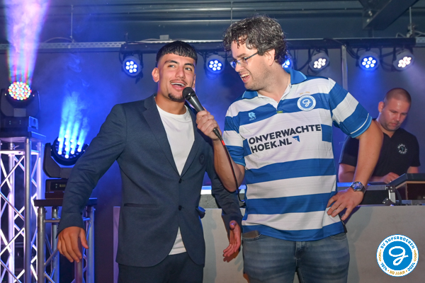 Vals Plat op het podium in de supporterskantine