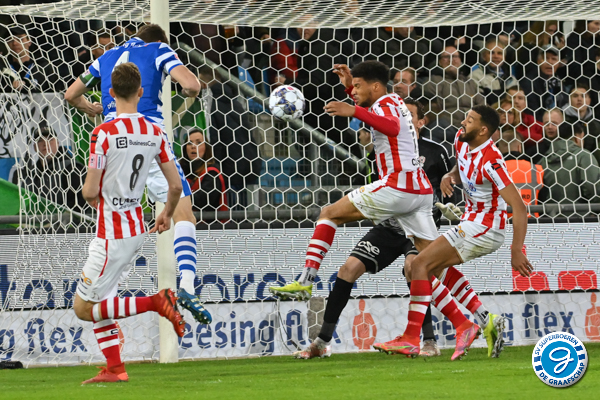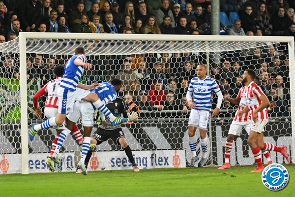 Zoals wel vaker dit seizoen kreeg De Graafschap het lid op de neus. Uit de allereerste aanval van de Ossenaren was het raak. Uit een afgemeten boogballetjes van Margaritha was het Sanches die de bal achter Hidde Jurjus knikte. Binnen de kortste keren was het alweer gelijk. Uit een lage voorzet van Danny Verbeek weet Sam Hendriks de bal tegen de touwen te werken.