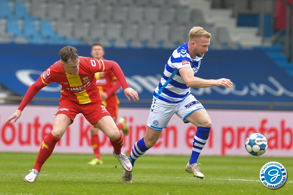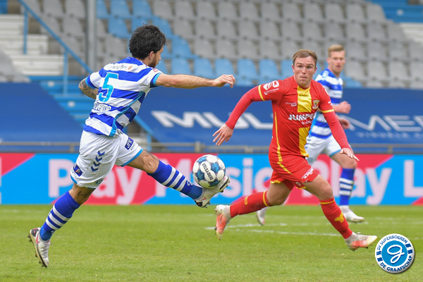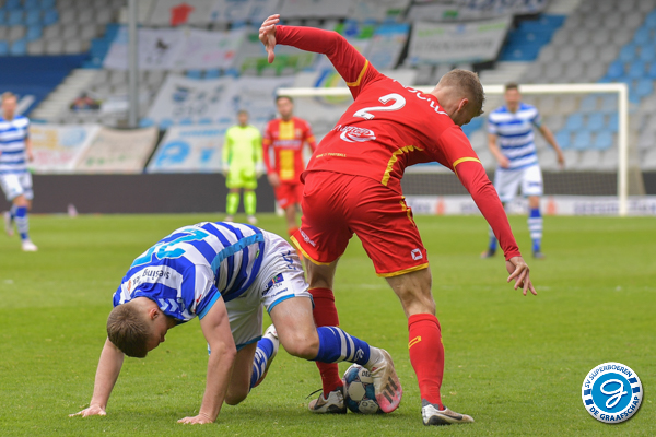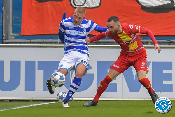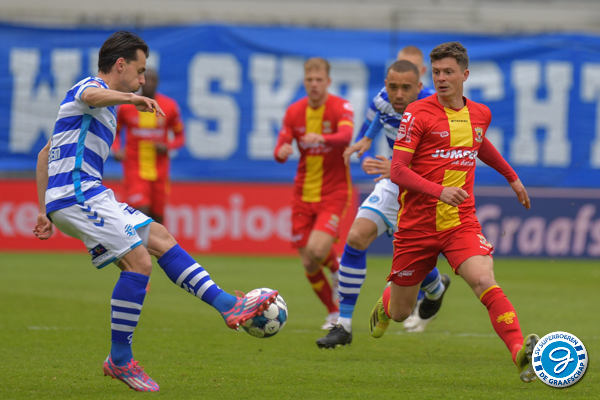 De 1e helft kenmerkte zich door een wat sterker en aanvallender De Graafschap. Go Ahead verdedigde compact en was gevaarlijk via de omschakeling. Kansen waren er weinig de 1e helft. Na 9 minuten kreeg de thuisploeg de eerste kans van de middag. Johnatan Opoku kreeg binnen de 16 de bal voor zijn voeten, uit de draai ziet hij de bal naast het doel gaan. Rond de 30e minuut kunnen we opnieuw een kans noteren. Ditmaal via Joey Konings die het eindpunt is van een aanval. De aanvaller schiet vanaf de rand 16 net naast het doel van Gorter.
