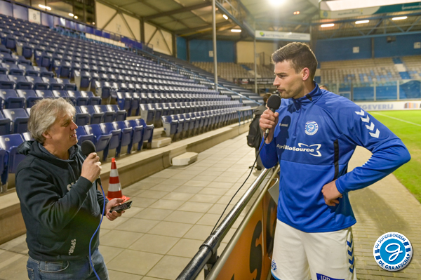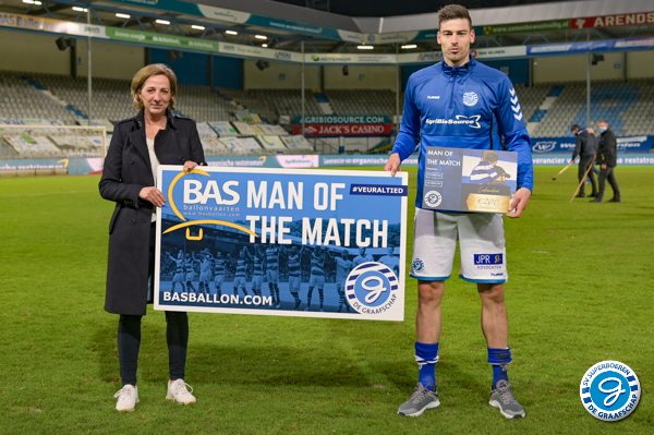 Een mooi initiatief van de supportersvereniging, die samen met kledingzaak ‘De Heren van 0314’ en Bas Ballonvaarten de Man of the Match nieuw leven heeft ingeblazen. Tijdens de wedstrijd De Graafschap - Excelsior werd Ted van de Pavert bekroond tot de man van de webstrijd. Hans Hissink sprak hem na de wedstrijd, na het overhandigen van de kadobon van 200 euro door Mariska Bais.