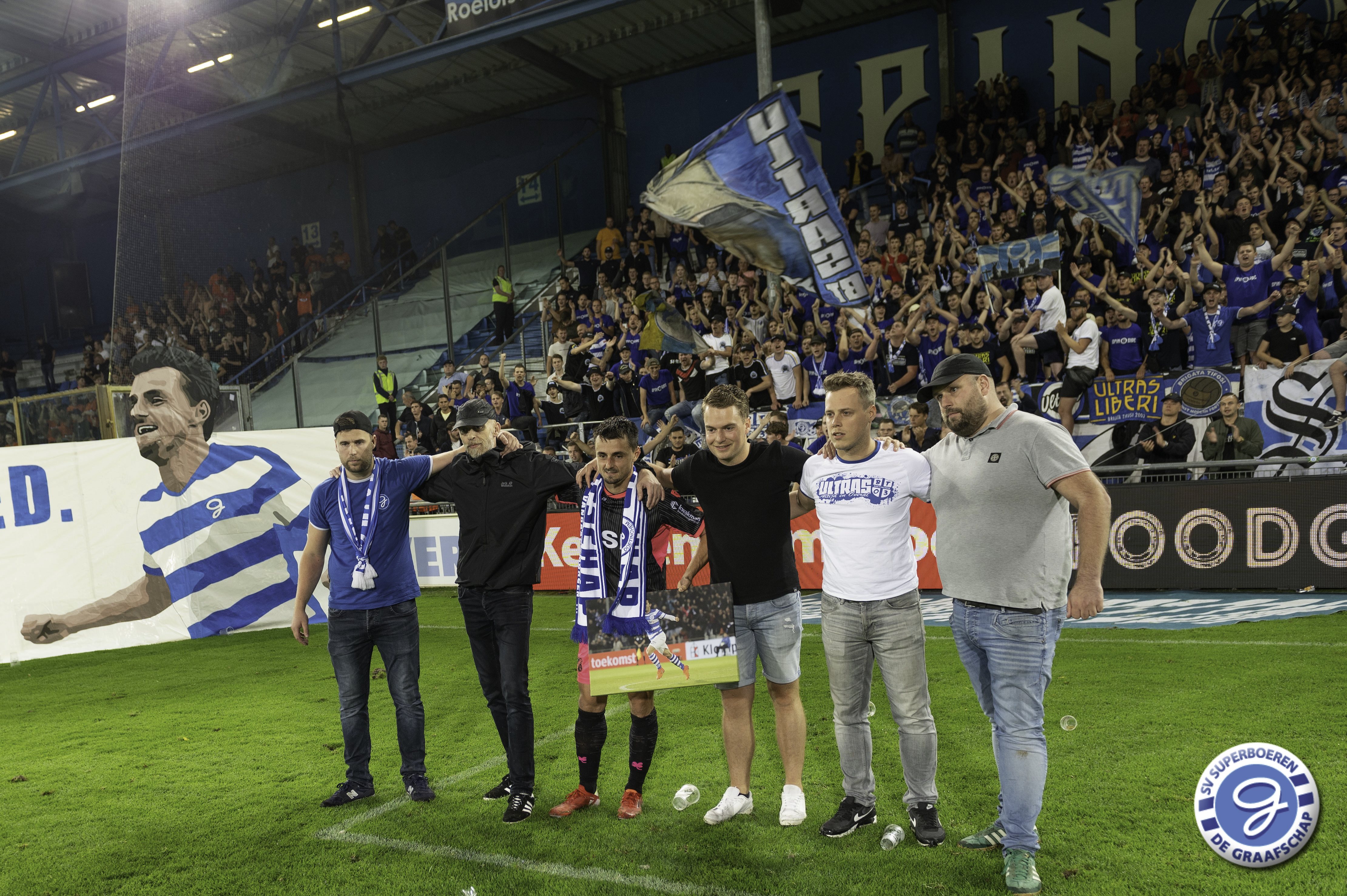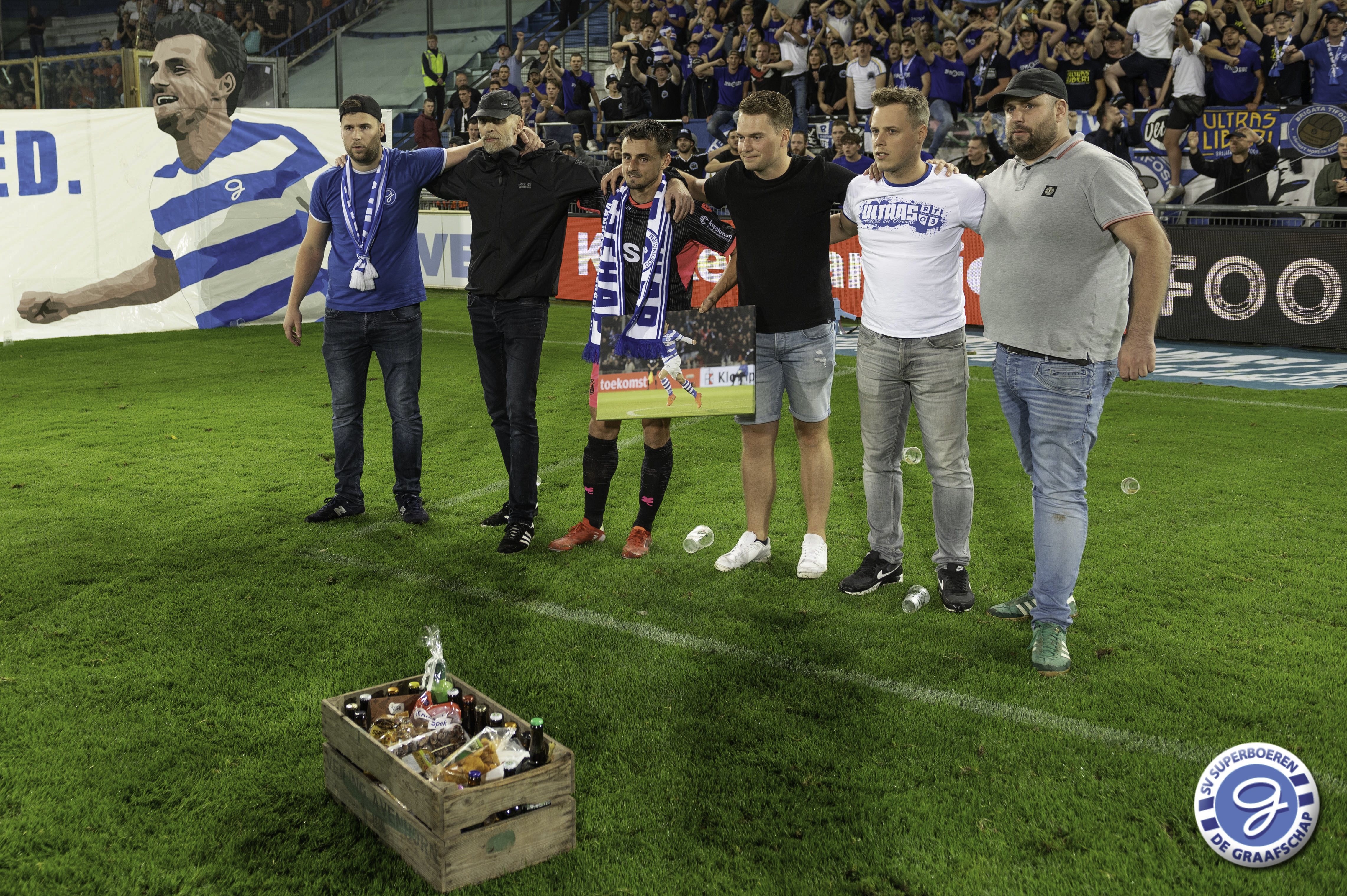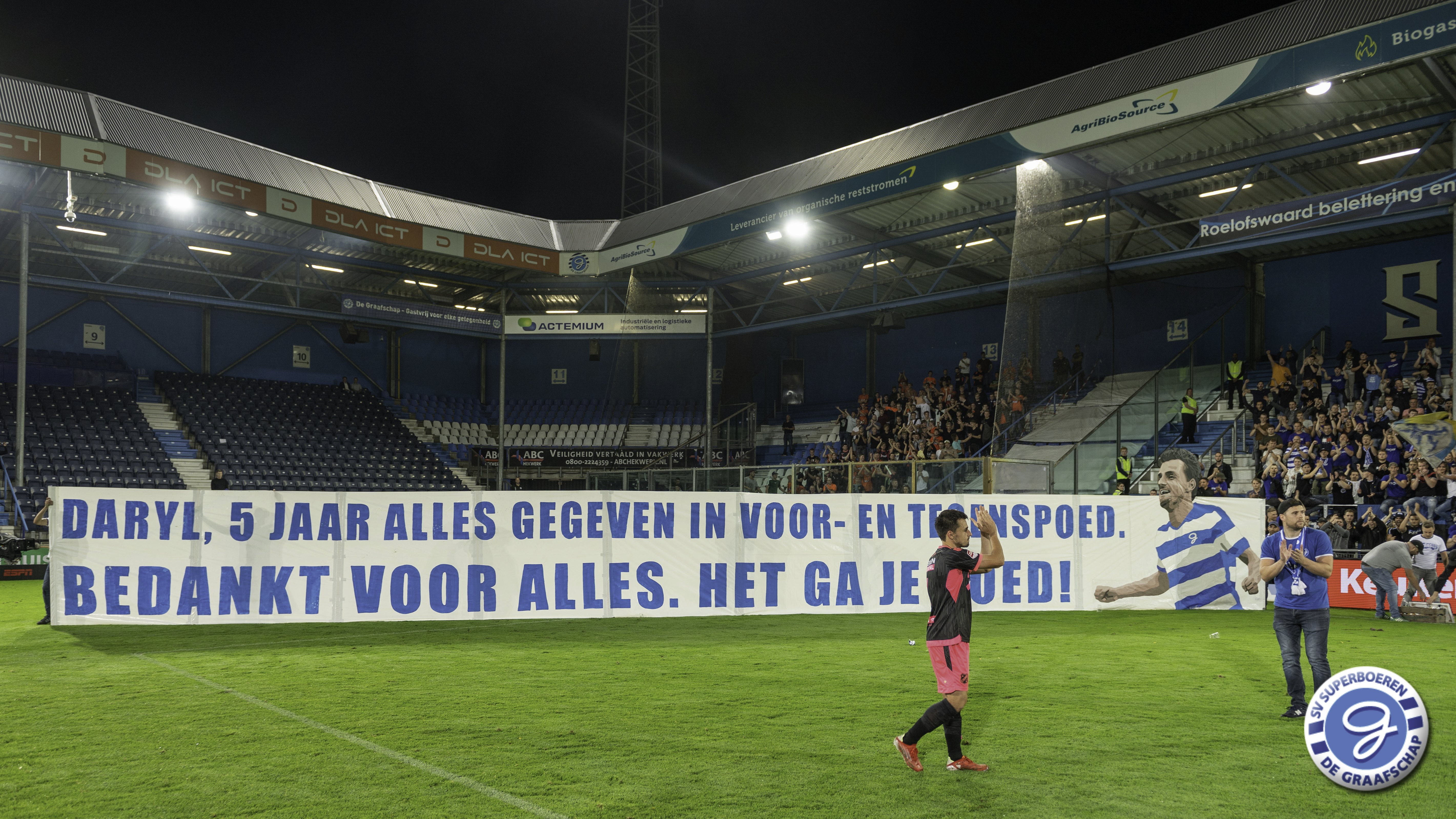 Daryl van Mieghem, sinds dit seizoen spelend voor FC Volendam, is na de wedstrijd De Graafschap - FC Volendam (0-3) gehuldigd als De Graafschap Man of the Year van seizoen 2020-2021. Dave Jansen overhandigde namens SV Superboeren Daryl het welverdiende aandenken (aangeboden door Ter Horst Groep). Ook sprak Hans Hissink Daryl na de wedstrijd. Luister hieronder naar het interview. Naast de overhandiging van het aandenken hadden de supporters ook een actie voor Daryl. Hieronder ook een kort fotoverslag van deze actie.