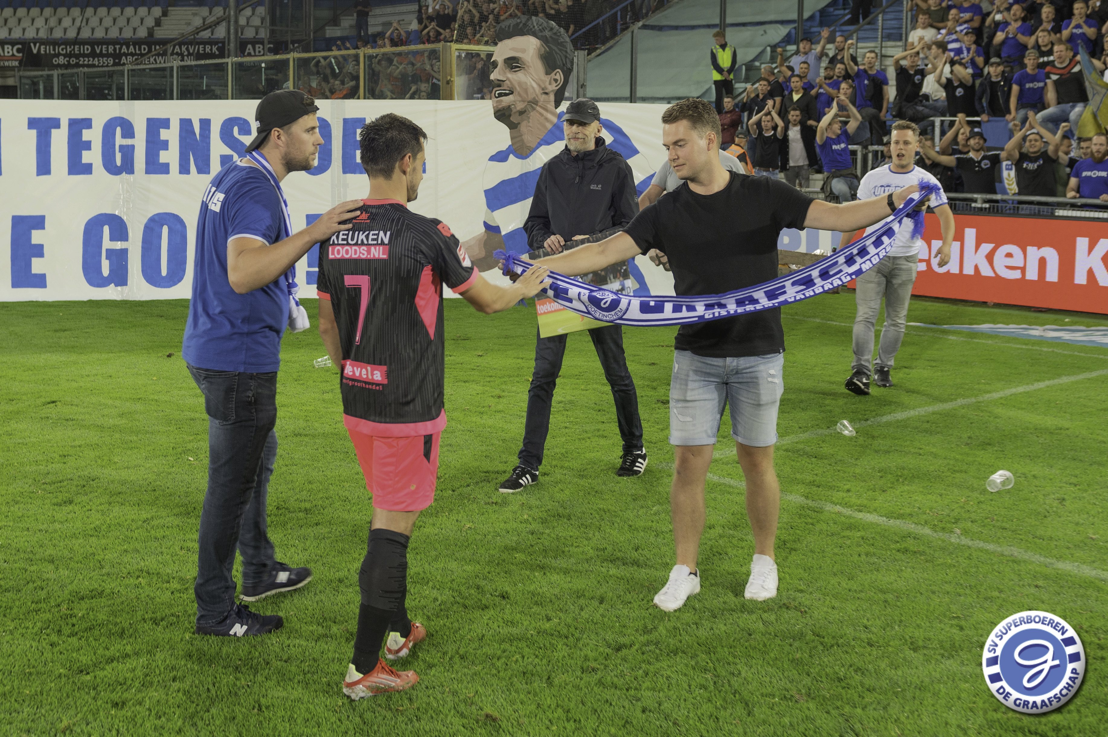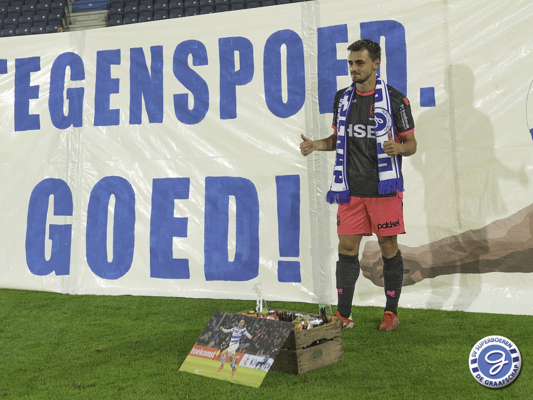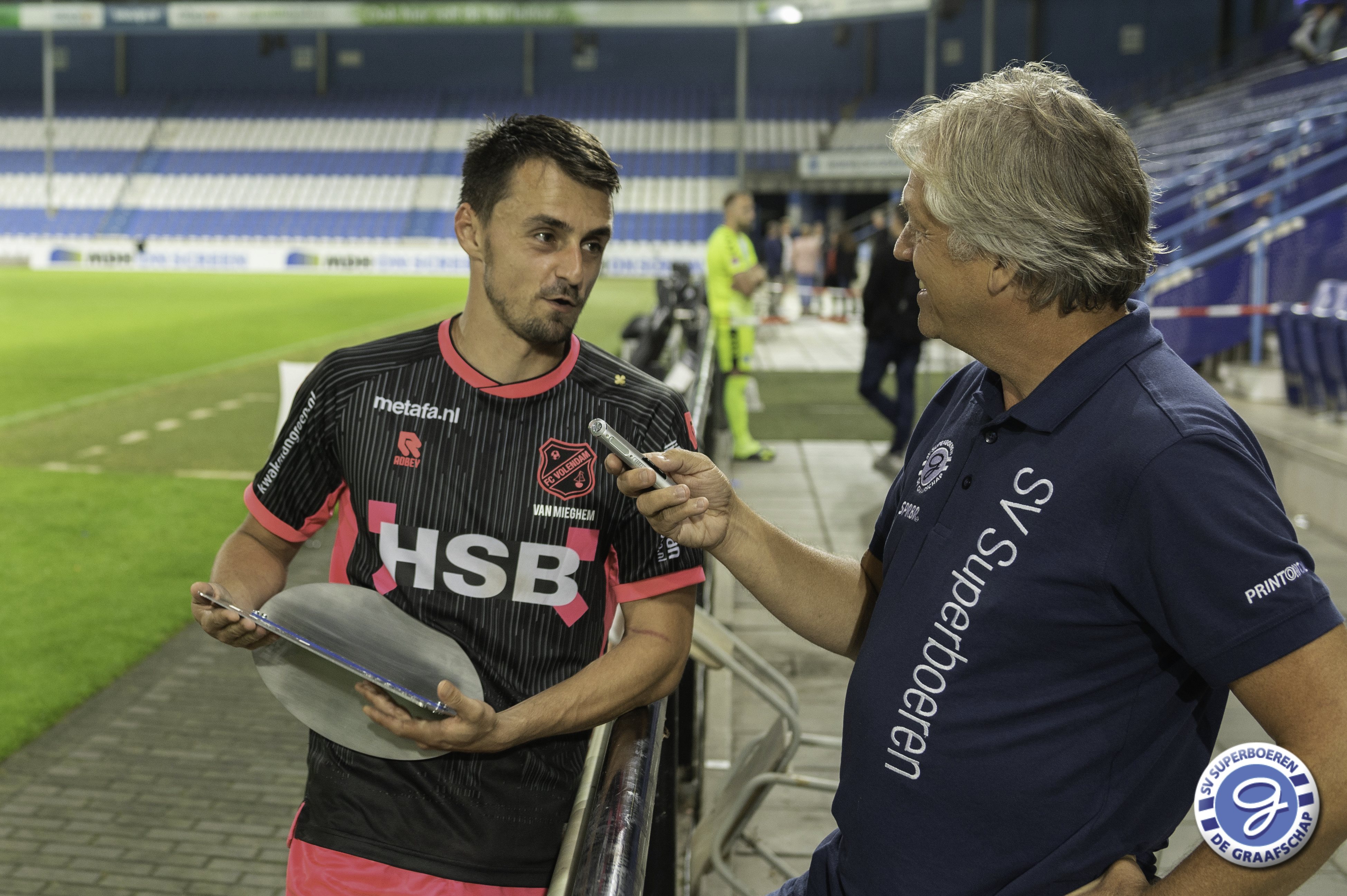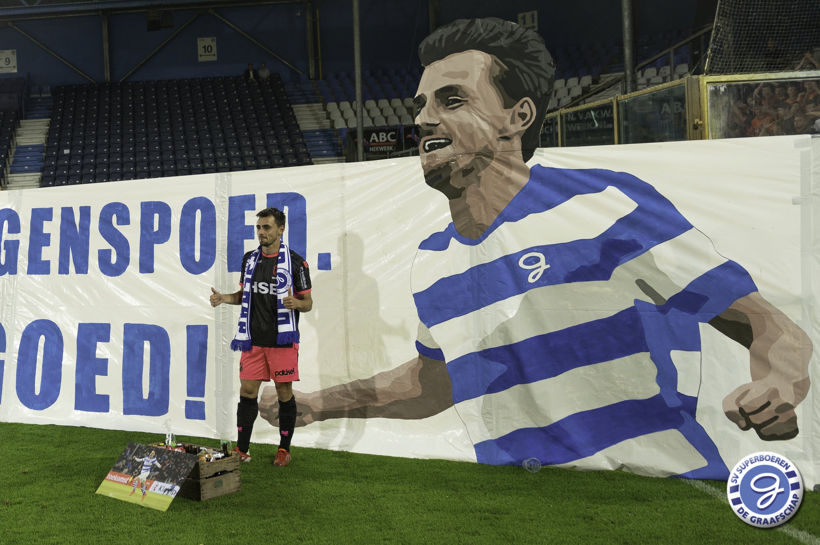 Daryl van Mieghem, sinds dit seizoen spelend voor FC Volendam, is na de wedstrijd De Graafschap - FC Volendam (0-3) gehuldigd als De Graafschap Man of the Year van seizoen 2020-2021. Dave Jansen overhandigde namens SV Superboeren Daryl het welverdiende aandenken (aangeboden door Ter Horst Groep). Ook sprak Hans Hissink Daryl na de wedstrijd. Luister hieronder naar het interview. Naast de overhandiging van het aandenken hadden de supporters ook een actie voor Daryl. Hieronder ook een kort fotoverslag van deze actie.